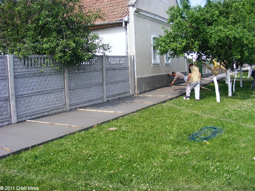 Echipele care toarna trotuarele noi in comuna Periam s-au mutat pe strada Freziei.